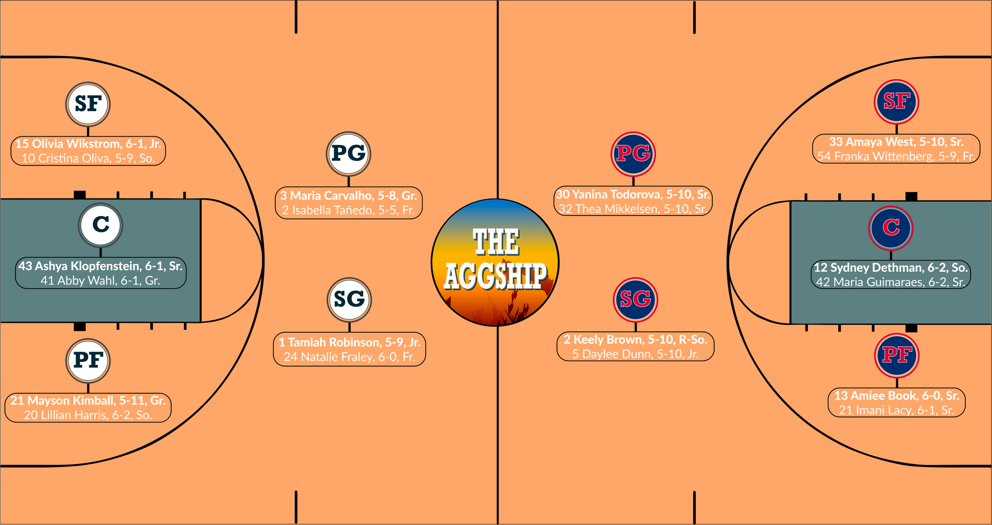 The Aggies got only 10 points from six other contributors, but still saw solid and impactful efforts from Mayson Kimball (five points, five rebounds, two steals and a block) and Ashya Klopfenstein (three points, five rebounds, two blocks and a steal).